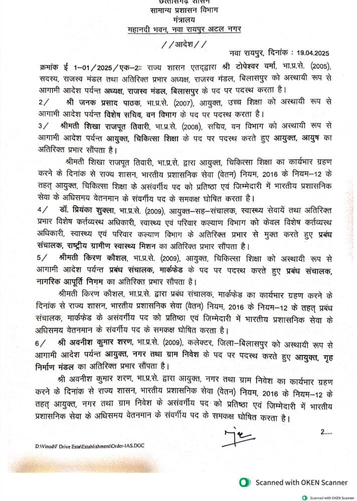 रायपुर। छत्तीसगढ़ सरकार ने प्रशासनिक महकमे में बड़ा फेरबदल किया है, कई जिलों के कलेक्टर समेत 41 IAS अधिकारियों का तबादला किया गया है, देखिए सूची